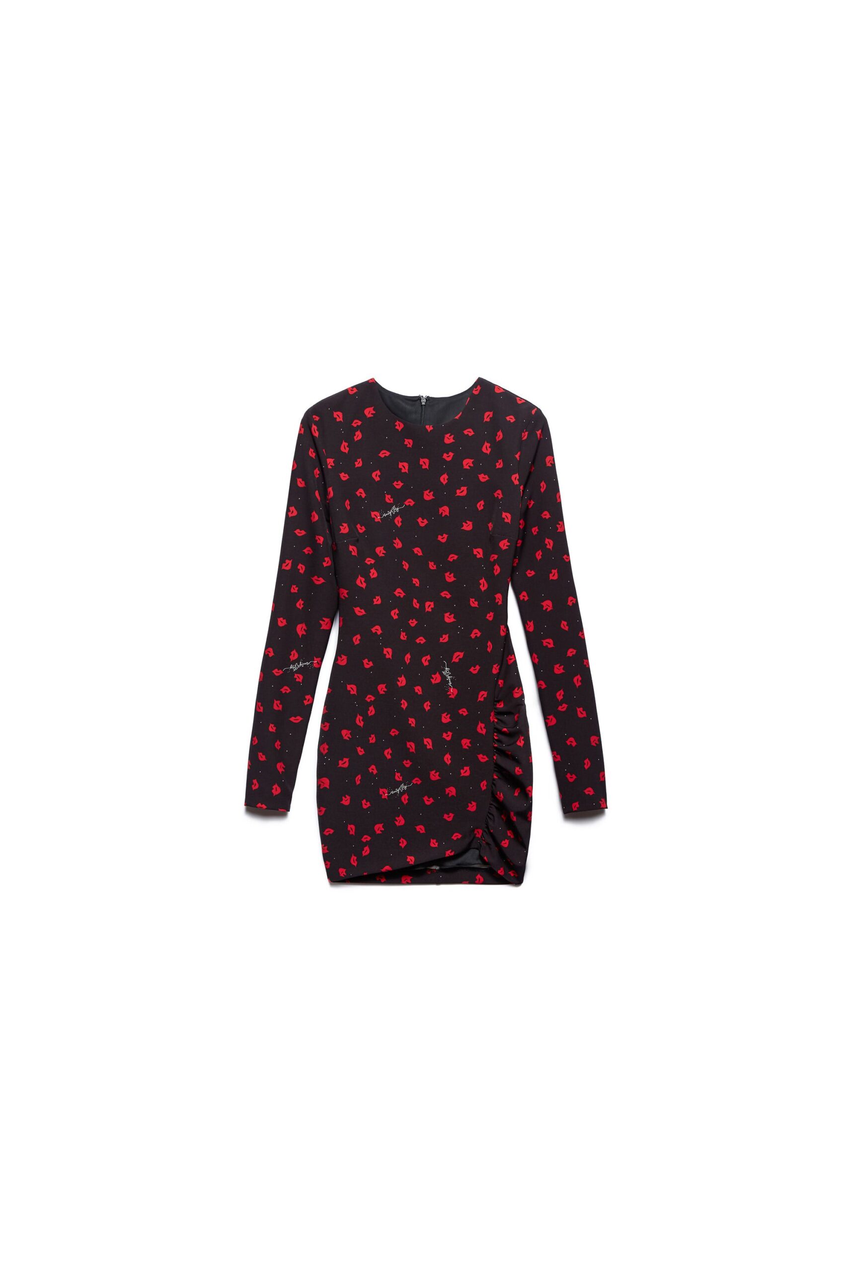 Abito aderente a manica lunga in fantasia bocche.