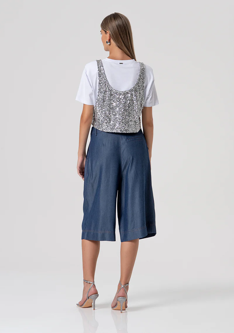 Bermuda in denim morbido con pinces frontali e vestibilità ampia.