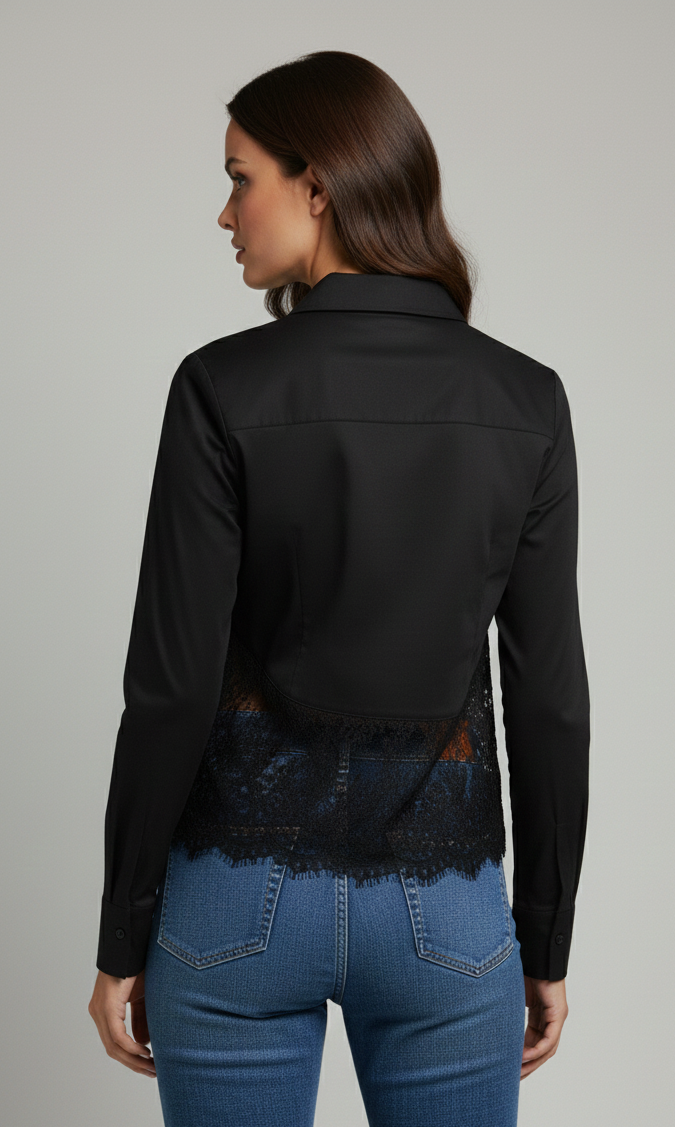 Non perdere l’occasione di arricchire il tuo guardaroba con la CAMICIA CROP NERA PIZZO Imperial.