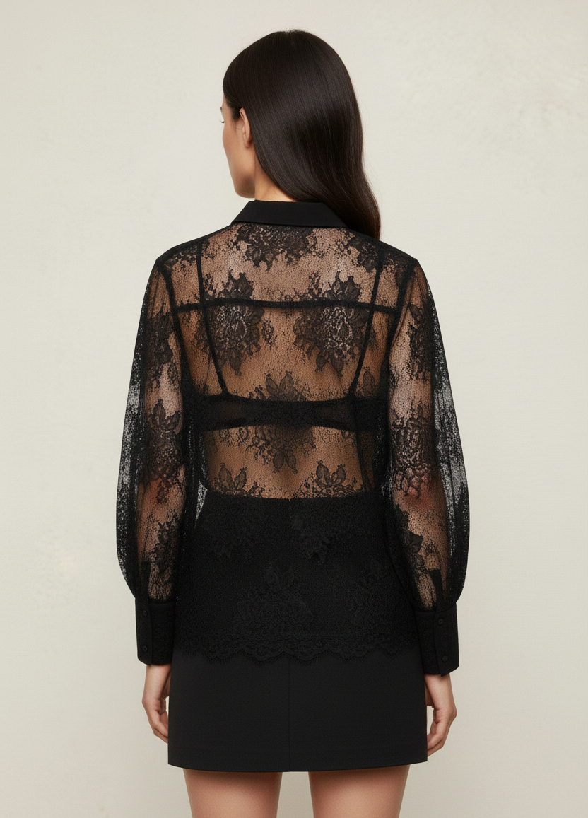 CAMICIA PIZZO NERO CHEMISETTE LACE Aniye By