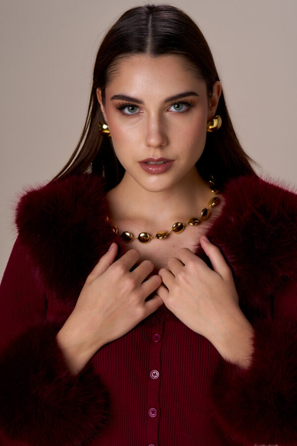 Non perdere l’occasione di arricchire il tuo guardaroba con la CARDIGAN BORDEAUX ECOPELLICCIA No Secrets.