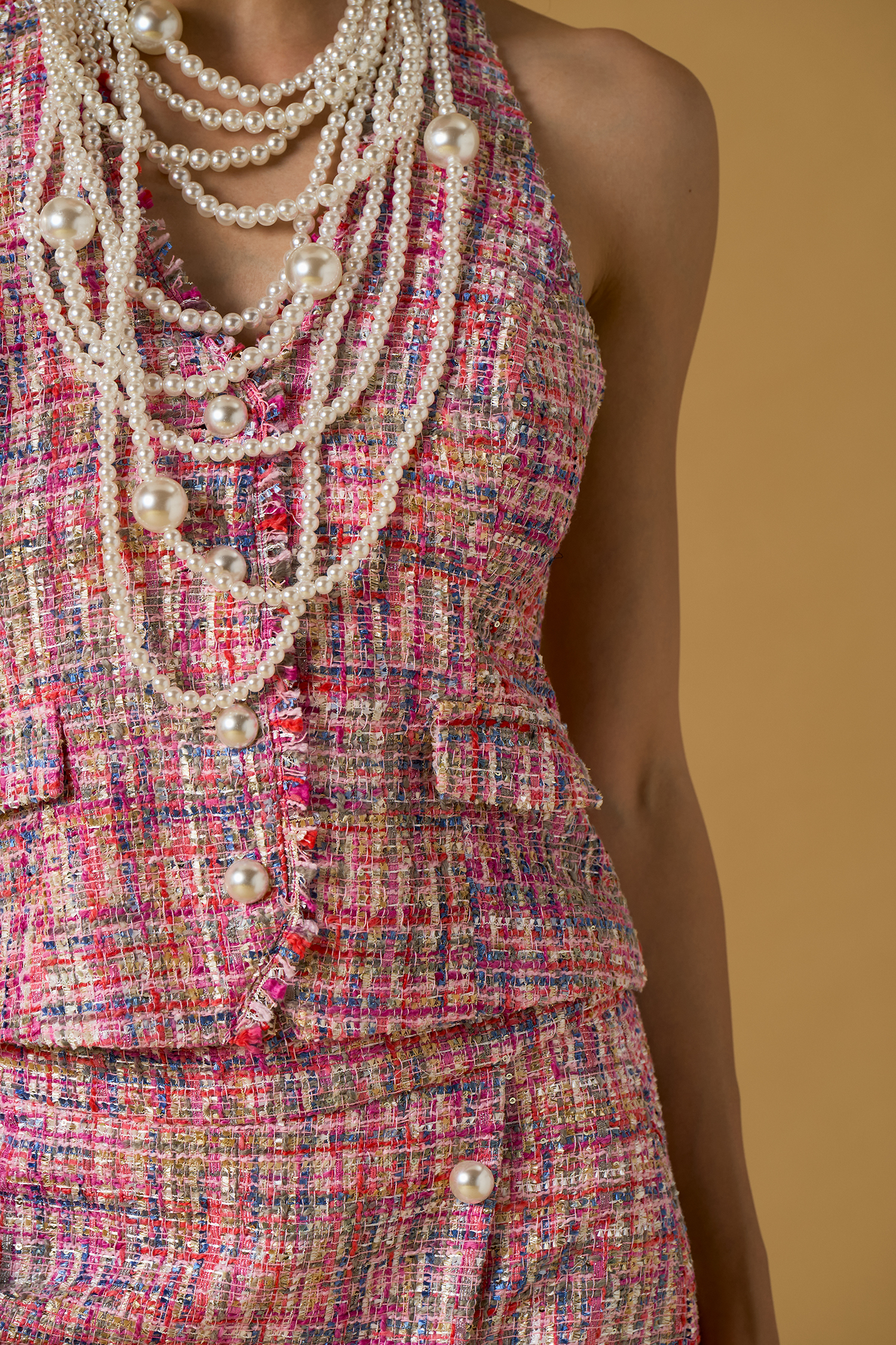 Collana con maxi perle multifilo a cascata di varie dimensioni e lunghezze.
