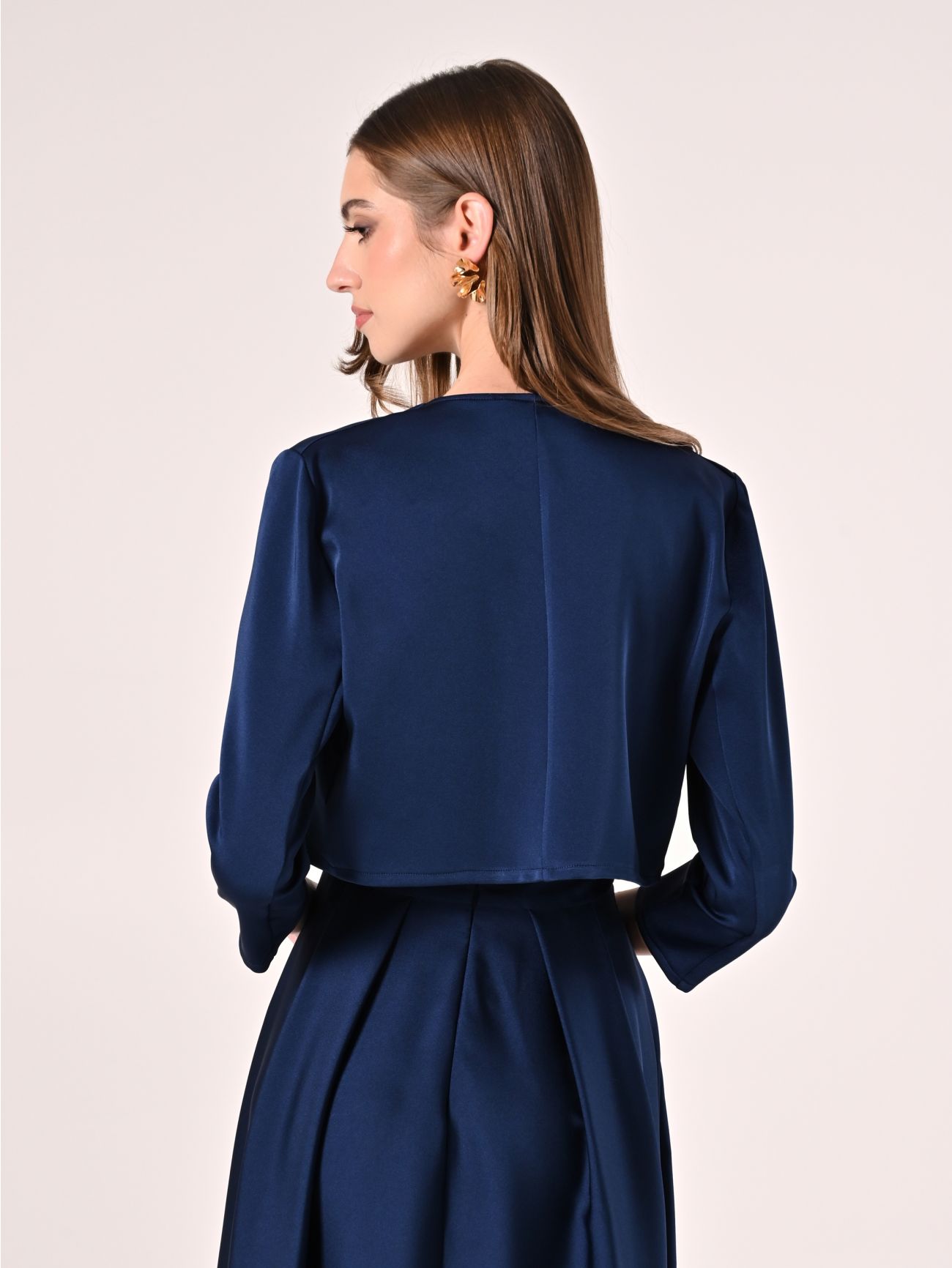 Coprispalle bolerino in raso con manica a 3/4 color blu navy.