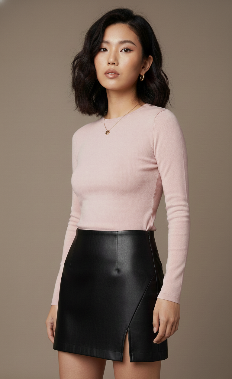 Minigonna in ecopelle super soft con spacchetto laterale e zip invisibile sul retro.