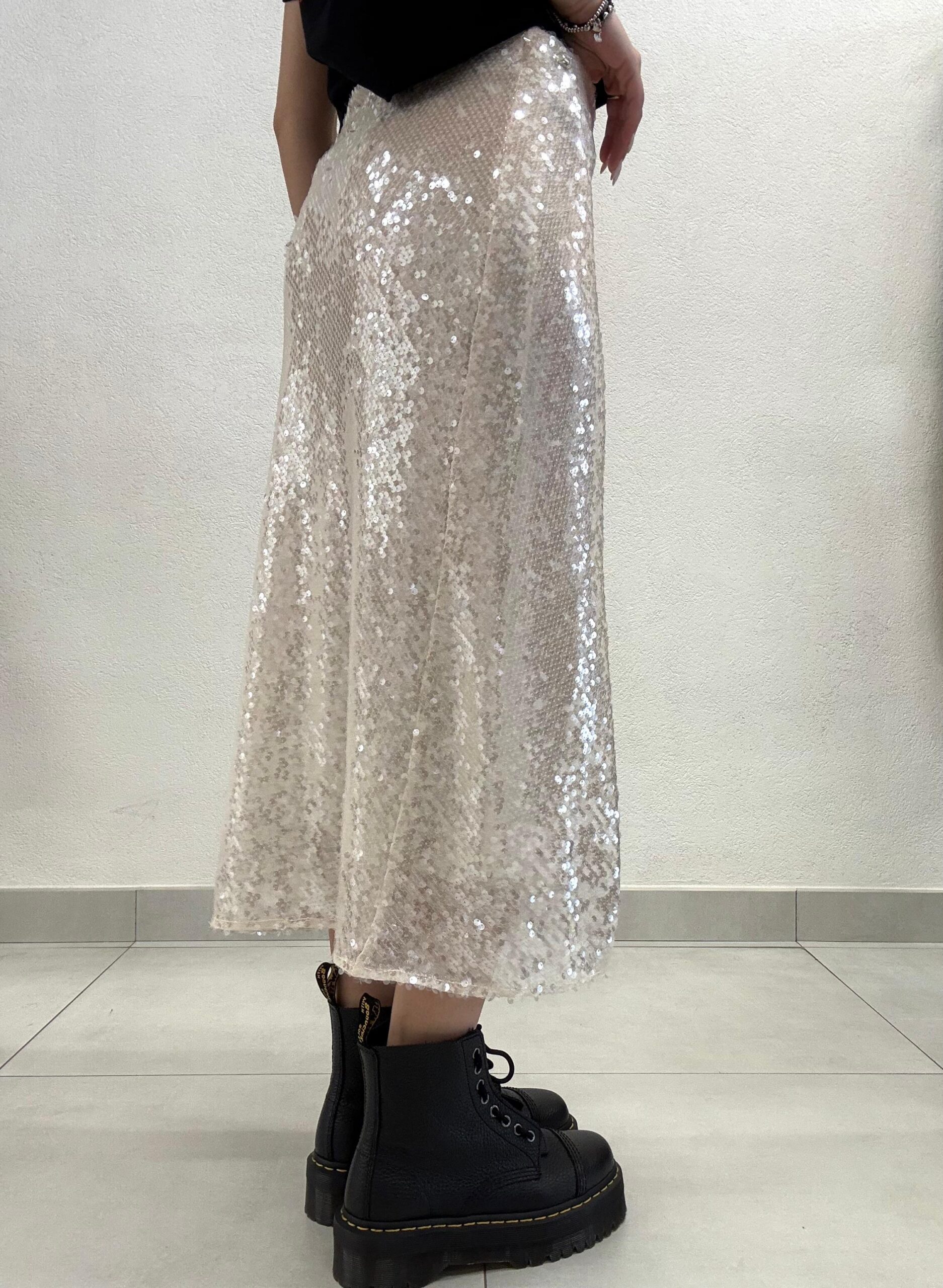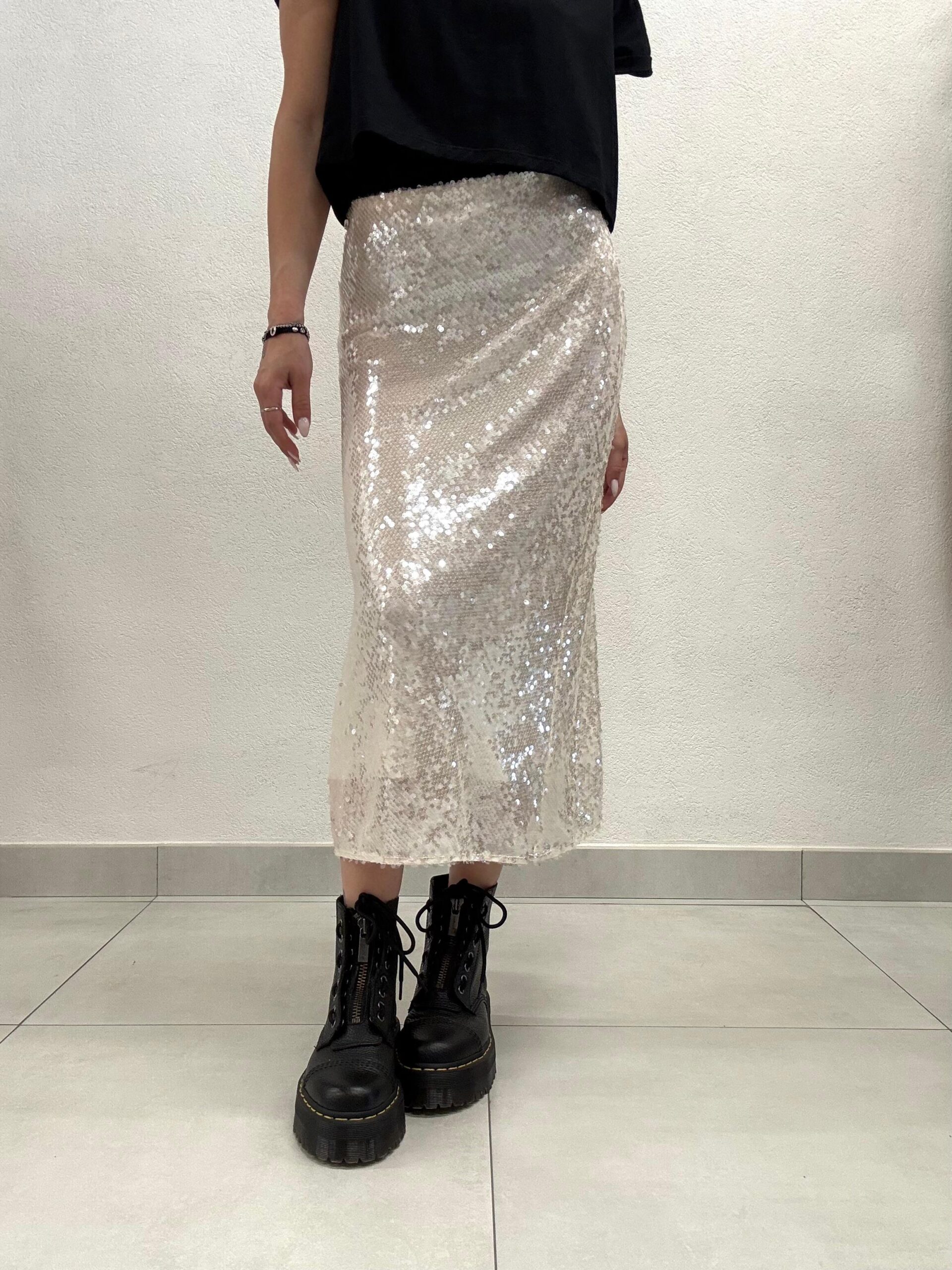 Non perdere l’occasione di arricchire il tuo guardaroba con la GONNA MIDÌ PAILLETTES AVORIO ALEGRE Relish.