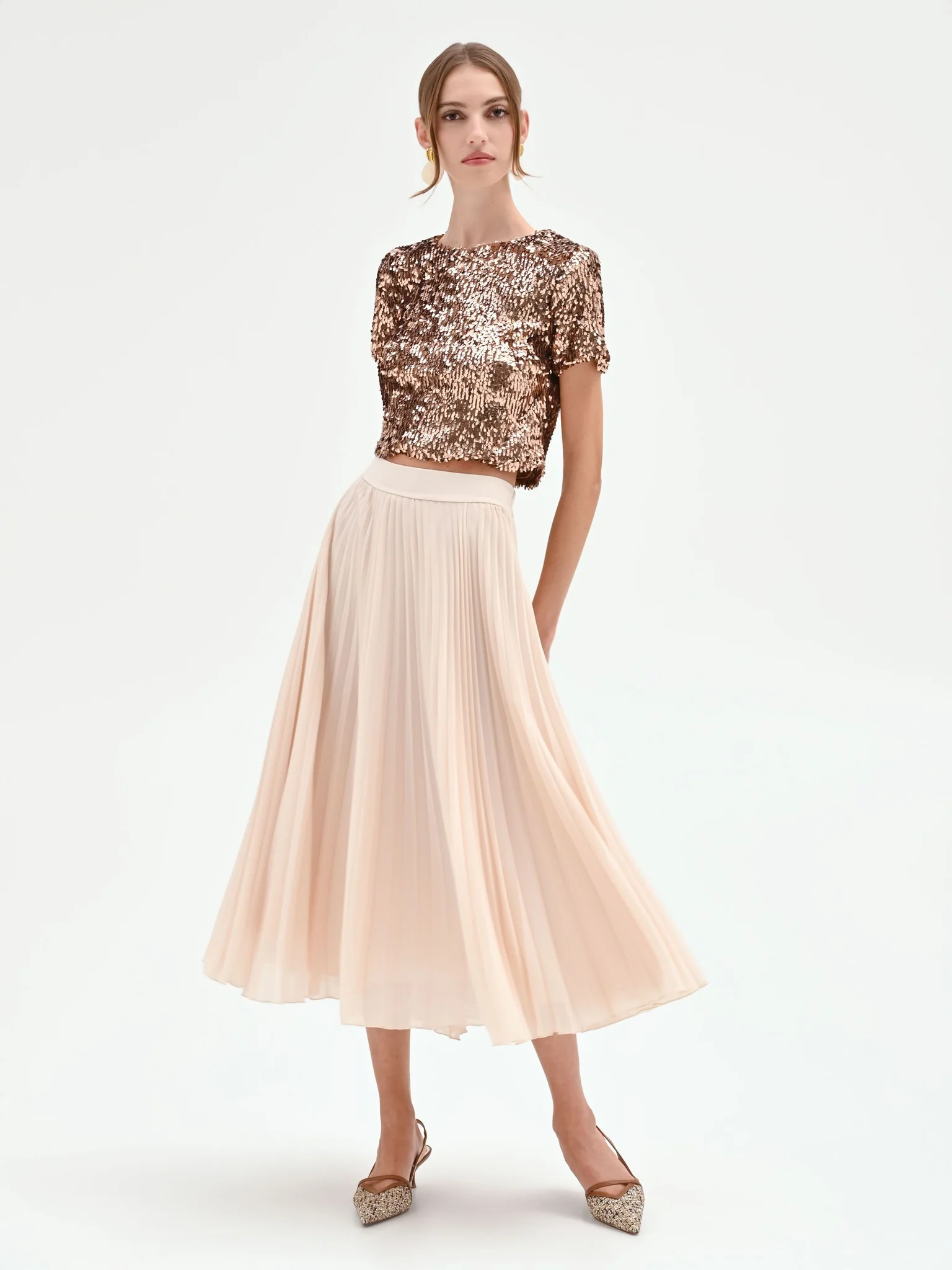 Non perdere l’occasione di arricchire il tuo guardaroba con la GONNA MIDI PLISSÉ AVORIO Rinascimento.