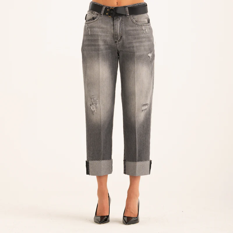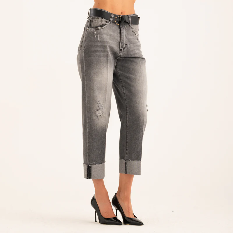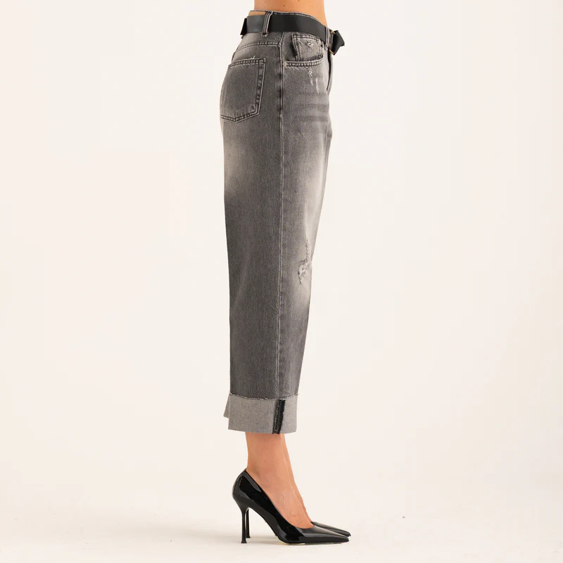 JEANS RISVOLTO CON CINTURA GRIGIO Have One