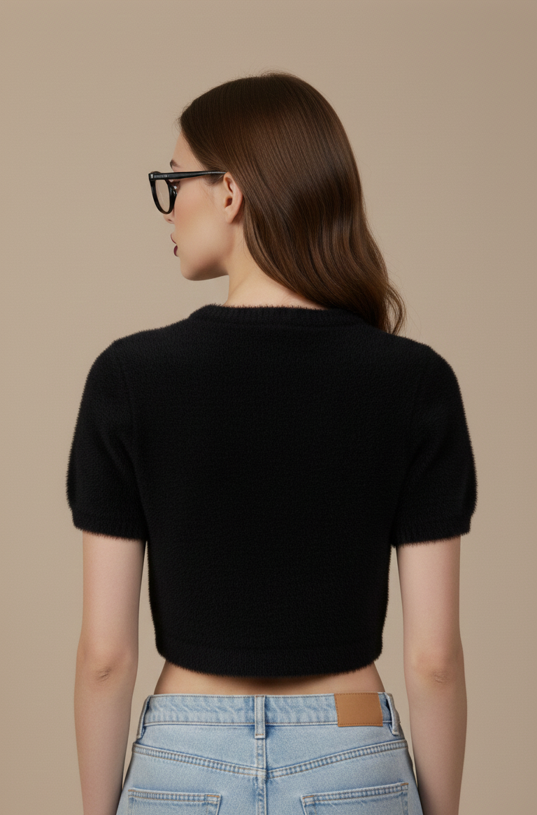 Maglioncino crop effetto peluche ultra soft girocollo a manica corta.