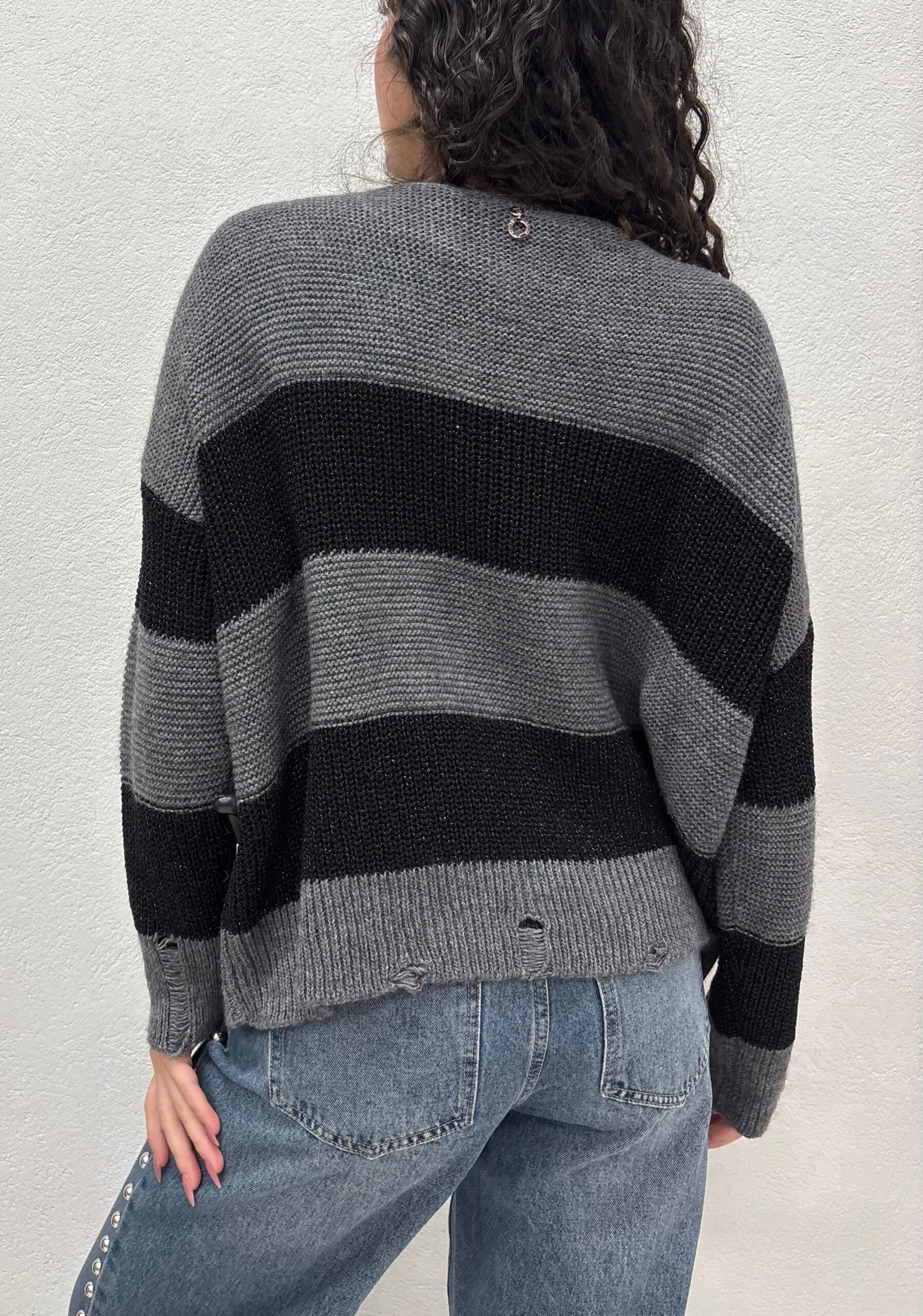 MAGLIA PULL GRIGIO A RIGHE LUREX CALIN Relish