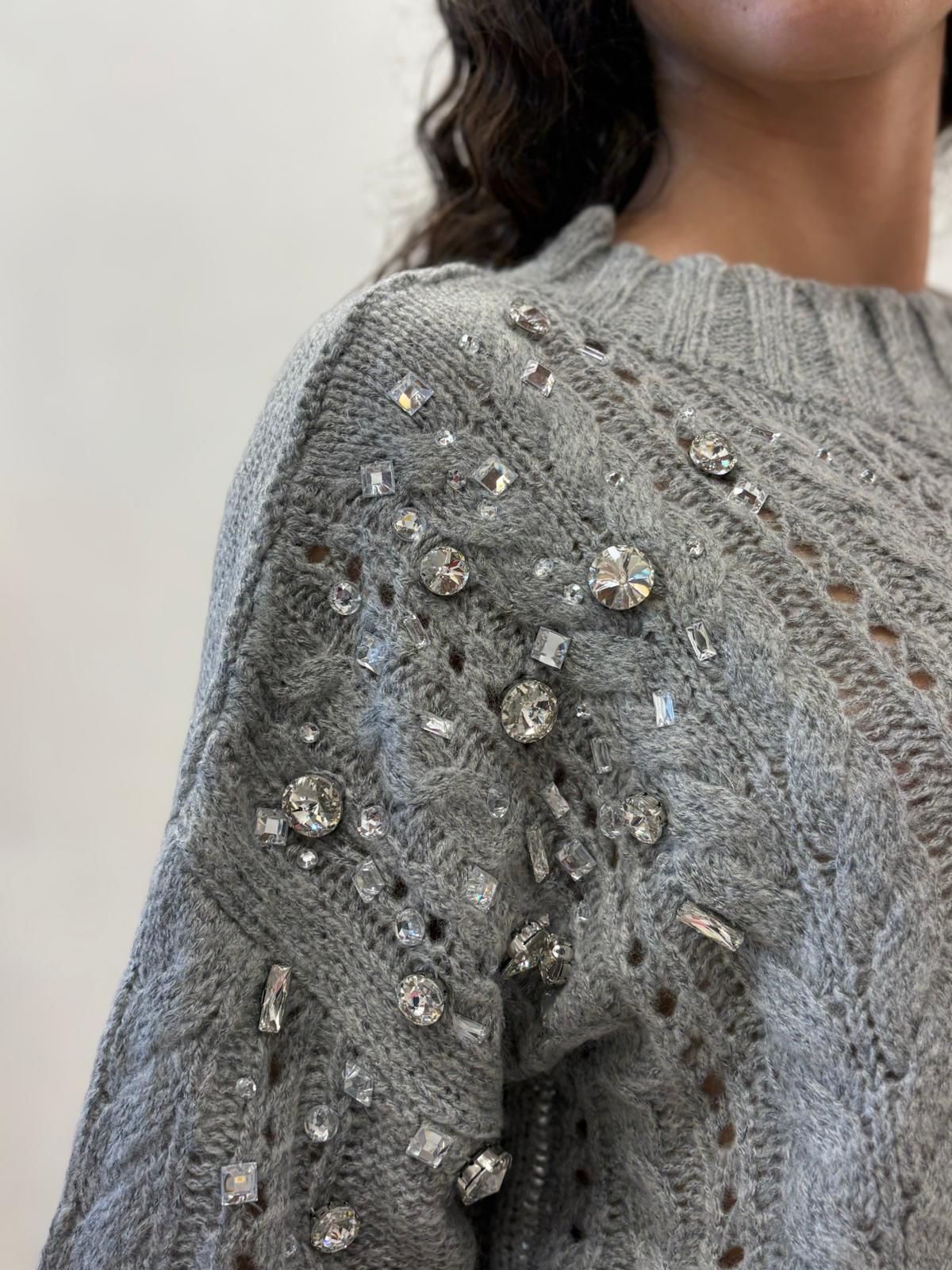 MAGLIA PULL GRIGIO TRECCE E STRASS SEFIRO Relish