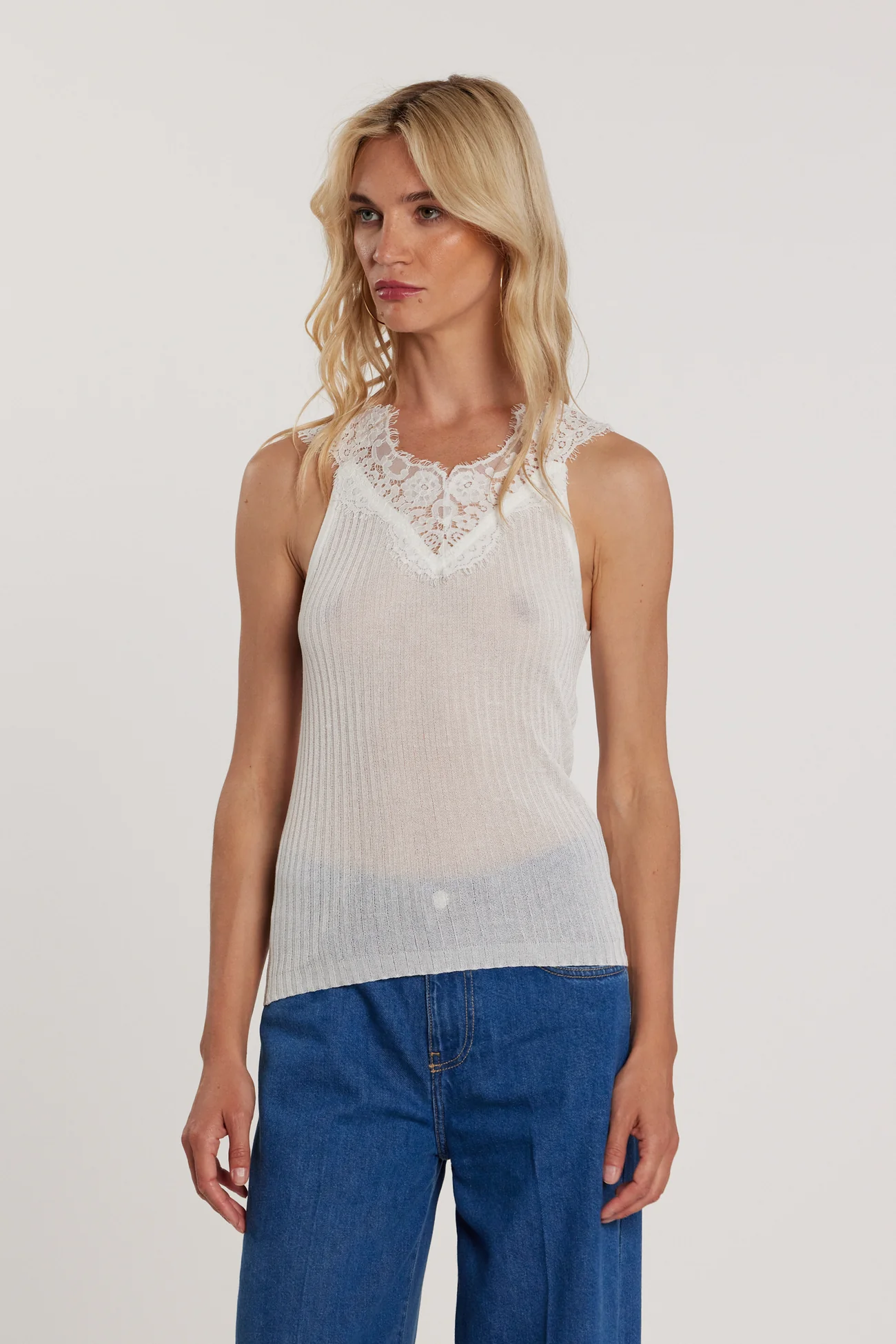 TOP CANOTTA BIANCA PIZZO Relish
