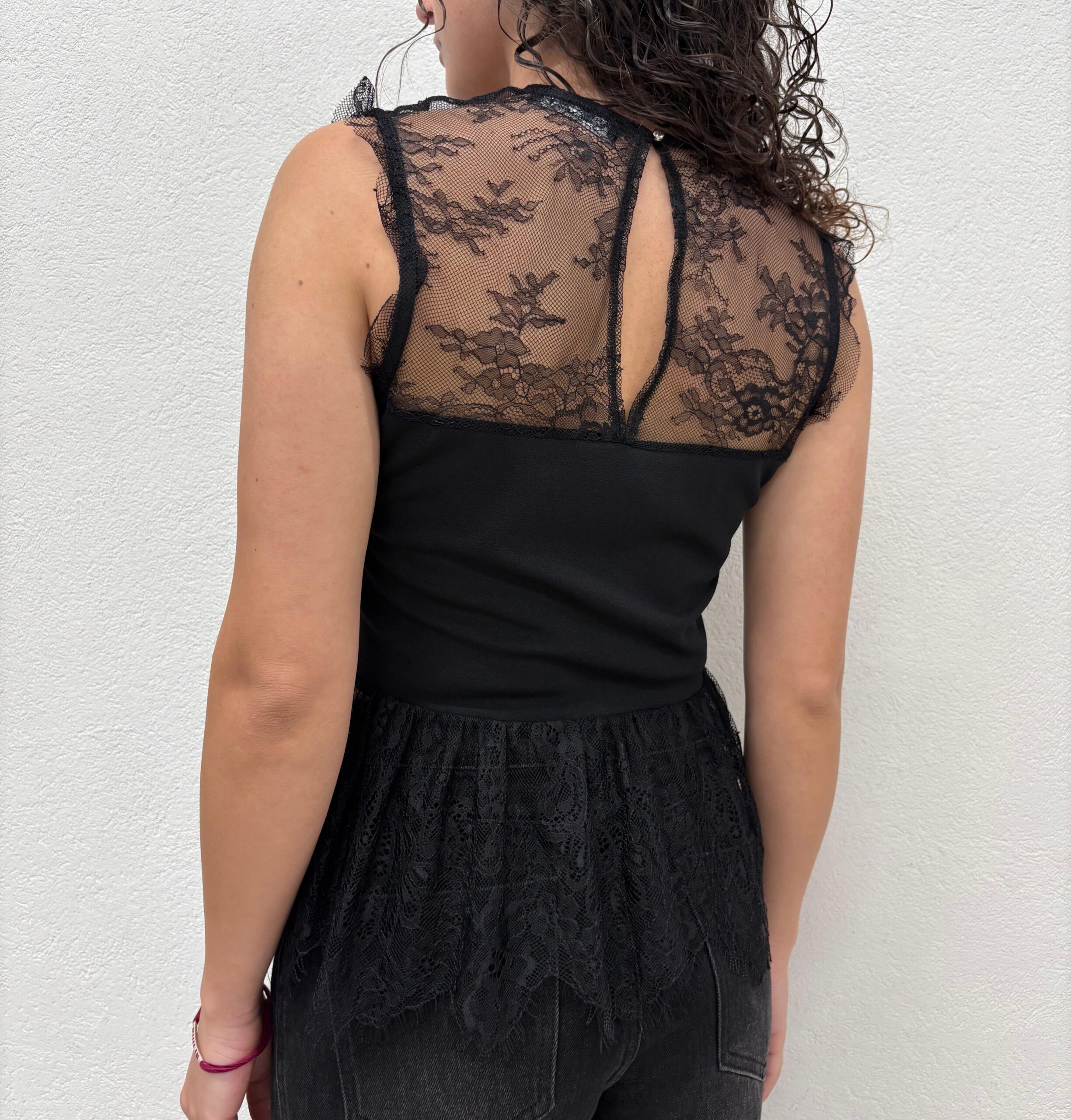 Non perdere l’occasione di arricchire il tuo guardaroba con il TOP NERO IN PIZZO Anna Rock.
